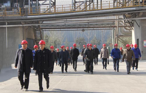 督查组一行深入生产车间进行现场查看 督查组一行先后来到中控室、脱硝车间等地,听取了大地公司总经理赵中要关于干法水泥生产线的工艺流程、技术装备、环保治理、节能减排等方面的情况汇报,详细询问了脱硝系统的运行状况,仔细调阅了相关历史数据。并深入脱硝生产现场,对氨水的储存,设备的运行情况进行了现场查看。