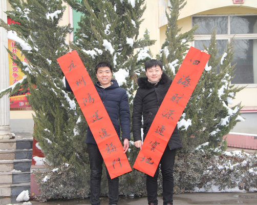 随着春节的临近,1月26日上午,宝丰县香山书社走进大地集团开展义写春联活动,提前送上新春祝福,受到广大职工的热烈欢迎。这是多年来,大地集团与宝丰县香山书社联手,让书法走进企业,让艺术助力企业文化建设的又一活动。 虽然外面冰天雪地,大地集团一楼会议室却热闹非凡,翰墨飘香,写春联的案桌围满前来欣赏的职工们,有的在精心挑选自己喜欢的春联,有的主动帮忙叠红纸、扶春联、晾春联, 现场一片欢声笑语,喜气洋洋。书法家们屏气凝神,挥毫泼墨,一幅幅行云流水、遒劲有力、潇洒俊逸的书法作品跃然纸上,象征着吉祥、喜庆、富贵,平安的春联,赢得大家的交口称赞和争相索要。半天功夫,300多幅春联被一抢而空。 “毛笔写的春联更有意义、更有年味”。一位员工拿着刚写好的春联爱不释手。此项活动不仅传递着广大员工对新年的美好期盼,也让员工感受到集团的人文关怀,营造温馨和谐的新春文化氛围。 义写春联现场