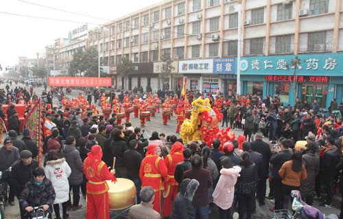 狮舞龙腾耀盛世,腾跃盘旋呈祥瑞。2月24日上午,宝丰县第二十四届民间艺术大赛如期举行,在县城人民路县公安局门前,由大地集团表演队——来自许昌市的飞跃武术龙狮团的龙飞狮舞成为大赛的亮点。 为了搞好此项活动,大地集团聘请许昌市飞跃武术龙狮团和许昌卷烟厂黄金叶盘鼓队前来表演,青龙翻腾越四海,瑞狮起舞闹八方,一条金色的巨龙在众人的娴熟操纵下上下翻飞腾腾而起,巨龙摇头摆尾变换着雄壮身姿,象征着大地集团热烈红火的发展前景,也宣示着宝丰大地的腾腾创业气息。双狮追逐嬉戏,你追我赶,惟妙惟肖,预示着生机勃勃的大地集团不断发生着新的变化,也预示着这片父城热土的巨大活力。盘鼓敲起来!阵阵高亢有力的宏音,似是催促着大地集团全体干部职工奔向新征程。精彩的表演吸引了大批观众,将演出现场围拢得水泄不通,一个个拿出手机不停地拍照录像……。 随后,龙狮团又来到大地集团慰问演出,演职人员在大地公司院内摆开龙门阵,大展身手。为广大干部职工献上了一场精彩的龙狮盛宴,赢来阵阵掌声。 最后,由双狮引路,巨龙表演进入大地公司中控楼,向大地集团拜年祈福、期盼狗年大吉!