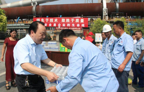 盛夏七月,骄阳似火。奋战在生产一线的职工们,时刻牵挂着工会“娘家人”的心。7月17日上午,县总工会一行在工会主席郭鹏飞的带领下冒着酷暑走进大地水泥,开展夏送清凉慰问活动,为广大职工送来了满满一车西瓜、矿泉水、绿茶、毛巾等防暑降温品。集团总裁王国杰、党委张副书记、工会主席赵中鑫等领导给予了热情接待。