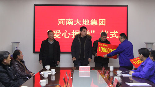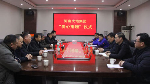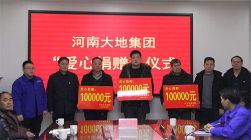 1月28日下午,乐虎在中控三楼会议室举行“爱心捐赠”仪式。大地集团分别为大营镇蛮子营村、肖旗乡岭湾村、宝丰县观音堂滴水崖村捐赠现金10万元。