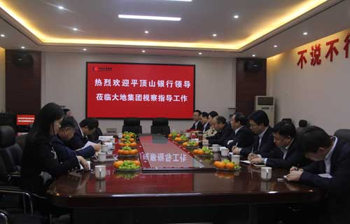 10月29日上午,平顶山银行党委书记、董事长高永华,常务副行长李艳生,营业管理部主任叶玲等一行到大地集团考察指导,集团领导张怀平、董事长张彪等陪同考察。