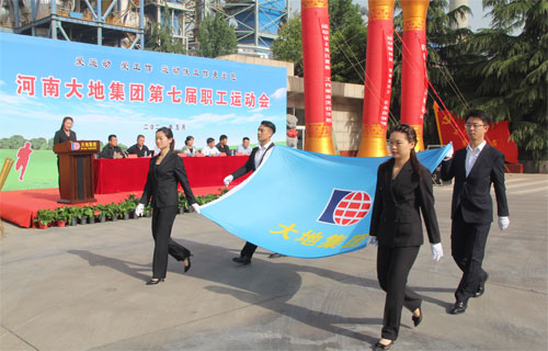 激情五月,活力无限。5月8日上午,大地公司门前彩旗招展,礼炮齐鸣,6支大红气柱分列两侧,显得格外喜庆,乐虎第七届职工运动会隆重开幕。县总工会党组书记、常务副主席张艳峰到会指导,集团总裁王国杰、副总裁陈志云等领导及来自各分公司、各部室500多名运动员参加了开幕式。