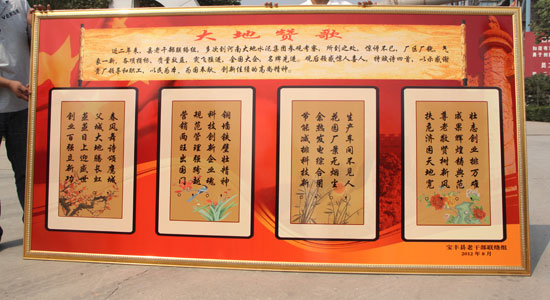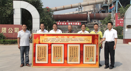 2012年9月3日上午,宝丰县老干部联络组一行5人带着对大地公司的深情厚爱,把一块写满感谢与赞歌的匾牌赠送到公司领导手中。以感谢长期以来大地公司对老干部的尊重和关心及以民为本,为国奉献,创新佳绩的高尚情操。老干部们在牌匾上赋诗四首,对公司的发展和为社会做出的贡献给予了高度的赞扬,对企业优美的环境给予了高度的赞誉。