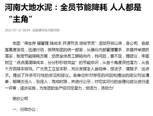LEHU(游戏)官方网站 >> 乐虎 >>媒体聚集 >> 河南大地水泥:全员节能降耗 人人都是“主角”