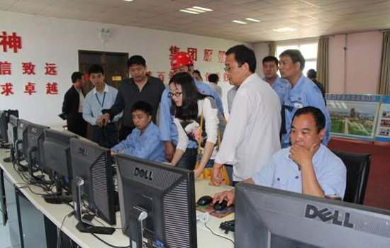 在中控室,大地公司副总王永普向刘勇副处长详细的汇报了公司水泥生产线脱硝项目的工艺特点和运行情况,刘勇对大地公司的环保工作给予了充分肯定,并强调大地公司脱硝项目是列入我省“蓝天工程”的重点减排项目之一,要求公司要进一步提高环保认识、勇挑重担,加快推进脱硝项目验收,为地方乃至全省的减排工作做出积极贡献。