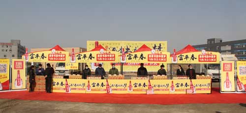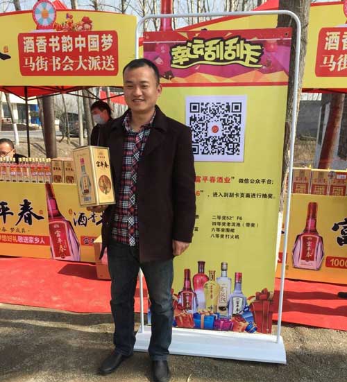 为了献情马街书会,活跃会场气氛,富平春酒业可谓用尽心思,精心策划,周密布置,在会场搭建了多个展台,设置多个品酒点、停车点、引导点,通过形式多样的互动交流,真心为群众,服务献真情。让酒香与书韵相合,使酒文化与曲艺文化共融,相继推出了“酒香书韵中国梦,富平春马街书会大派送”活动,凡关注富平春微信公众平台,通过扫描二维码可免费领取富平春华贵酒、F6F3等八种不同的奖项,引来广大过往群众纷纷驻足参与,在各个展台,笔者看到人潮涌动,络绎不绝,在志愿者的细心引导下,有的拿起手机扫描,有的正在品酒,有的正在领奖,那高兴的样子,怎一个“乐”字了得。同时,为给广大群众提供更多方便,富平春酒业还精心布置好两个停车区,推出了别具匠心地推出停车赠酒活动,凡凭停车票可免费领取老泥池酒一瓶,让你既能停车又能领酒,可谓一举两得。