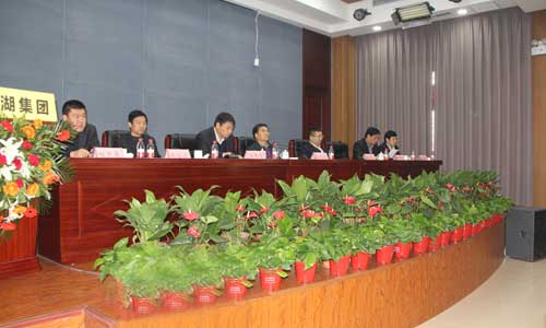 董事长张彪作工作报告 总裁崔泉发主持会议