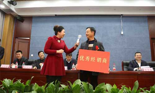 优秀经销商代表余雯作典型发言 会议对荣获2015年度的先进个人、先进集体、优秀经销商进行了表彰奖励。先进个人代表、劳动模范代表、先进集体代表、优秀经销商代表分别上台发表获奖感言,大家纷纷表示,要以这次获奖为契机,珍惜荣誉,再接再厉,以更加饱满的工作热情全身心投入到工作中去,决不辜负集团领导及同事们的期待和厚望。