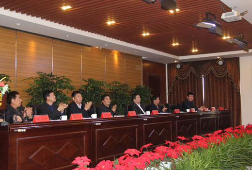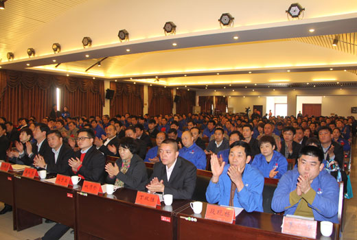 集团领导在主席台就座 董事长作工作报告