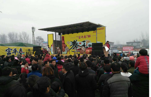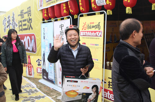 2月27日(农历正月十二)上午,笔者准备赴马街一游。刚到路口,就被“七百年书韵唱响中国梦,九千岁贾湖再现富平春 ”“大地集团预祝2018马街书会圆满成功”的大红氢气球和条幅吸住了眼球。在富平春酒宣传2号展台前,围满了前来品酒、扫码的群众。“今天真得劲!还未到马街就中了一瓶好酒”一位中年人高兴得合不拢嘴。