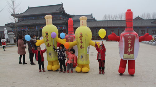 中奖者怎一个“乐”字了得 随着涌动的人潮,笔者来到书会现场,沿路两旁挂满了富平春的彩色吊旗和大红气球,把会场装扮得格外热烈和喜庆。会场中间摆满了贾湖酒业义务为广大商户和艺人搭建的暖心帐篷。更引人注目的是那招人喜爱的瓶模,穿着不同色彩,不同形状的衣服分散在会场各个角落,并不时地与大家握手互动,引得许多群众与之合影留念,更是惹得小朋友们欢欣不已。更为给力的是那神奇惊险的大巴悬浮超人,不时与现场群众争相留影互动。