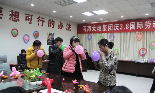 为使广大女工度过一个快乐,有意义的节日,3月7日下午,大地集团在中控三楼会议室举办“庆三八国际劳动妇女节联欢会”,全厂女职工欢聚一堂,畅所欲言,共同庆祝自己的节日。集团有关领导、工会负责人到会祝贺。 会上,党委副书记兼集团办主任闫中安首先向广大女工致以节日的问候和美好的祝愿。他说,多年以来,集团广大女工奋战在公司的各个岗位,爱岗敬业、积极进取、充分发挥了女人“半边天”的作用,为公司的发展壮大作出了积极的贡献!他希望广大女工要充分发扬吃苦耐劳精神,敢于创新,大胆工作,力求更大的发展和进步,继续为公司的发展出谋献策,再立新功! 一支欢快精彩的舞蹈《大姑娘美》拉开了联欢会的序幕,舞出了女同胞们阳光向上的风采和奋发有为的精神。职工翟国套的一首《一剪梅》为女工送去美好的祝福。马海燕的一曲《火火的姑娘》,唱出了女同胞们对美好幸福生活的追求和向往。 联欢会上,大家纷纷登台表演,歌曲、舞蹈,戏曲等不同形式的表演,博得现场观众一阵阵热烈的掌声、喝彩声。为活跃现场气氛,主持人还穿插了惊喜不断的趣味猜谜有奖环节,令大家兴奋不已。一场别开生面的吹气球比赛,给女同胞带来了不少的惊喜和快乐。大家在轻松愉快的氛围中度过了一个难忘了三八妇女节。