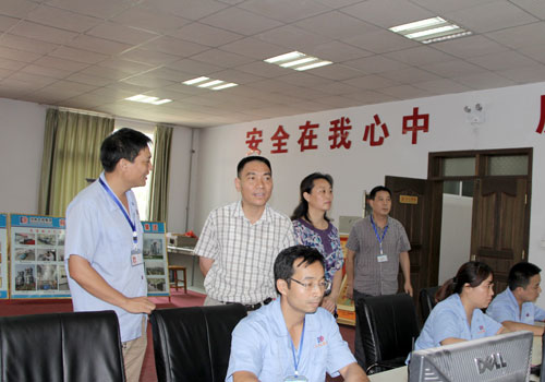 在中控室,大地公司总经理王永普讲解了干法水泥生产线从石灰石均化、原料粉磨到熟料烧成、水泥粉磨等生产工艺流程,夏杰长一行详细了解了余热发电等情况,他们对我公司先进的工艺技术及在节能减排综合利用方面取得的成效给予了高度评价和充分肯定。