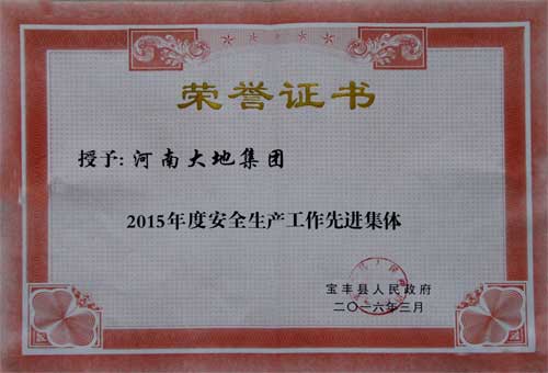 LEHU(游戏)官方网站 >> 走进大地 >>资质荣誉 >> 安全生产工作先进集体