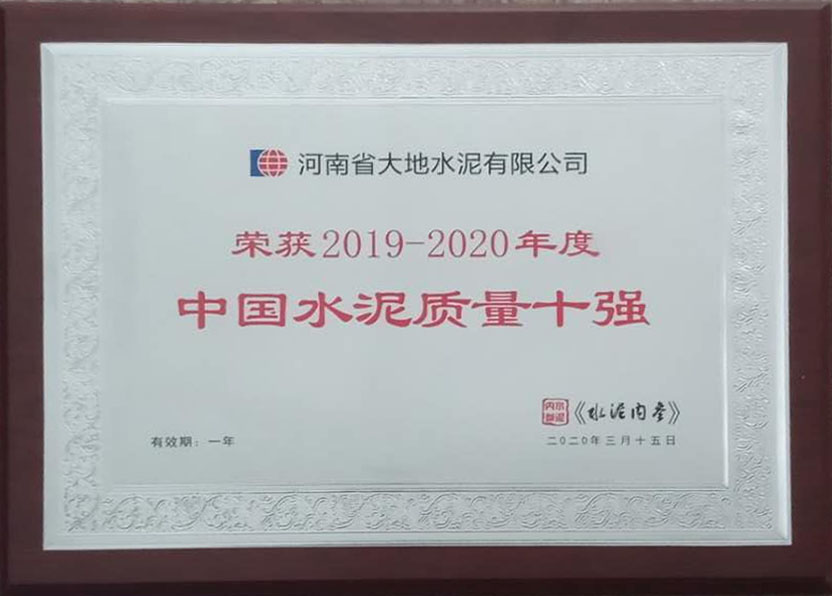LEHU(游戏)官方网站 >> 走进大地 >>资质荣誉 >> 荣获2019-2020年度中国水泥质量十强