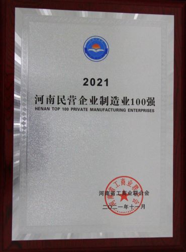 LEHU(游戏)官方网站 >> 走进大地 >>资质荣誉 >> 河南民营企业制造业100强