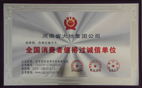 LEHU(游戏)官方网站 >> 走进大地 >>资质荣誉 >> 全国消费者信得过诚信单位