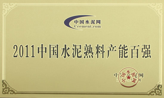 LEHU(游戏)官方网站 >> 走进大地 >>资质荣誉 >> 2011中国水泥熟料产能百强